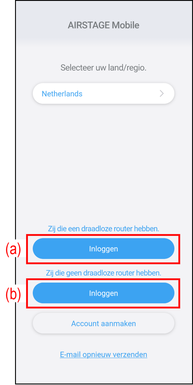 * Als u een draadloze router heeft, tikt u op [Inloggen] (a).