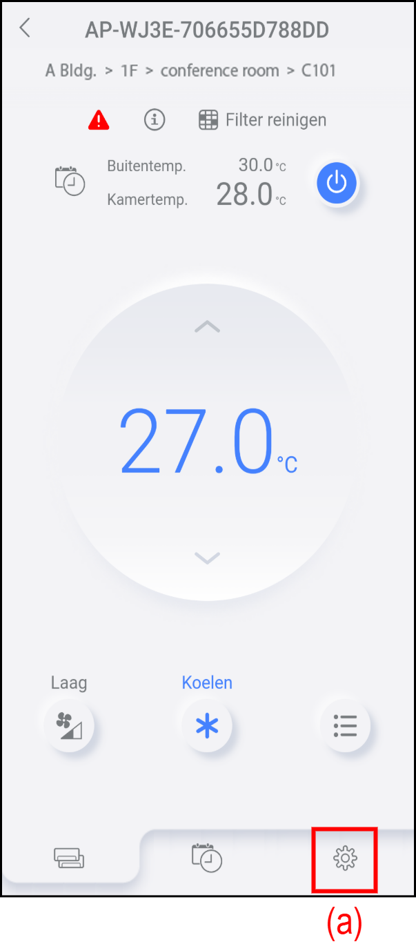 U kunt de verschillende instellingen voor deze app of de airconditioners controleren en wijzigen op het tabblad Instellingen [