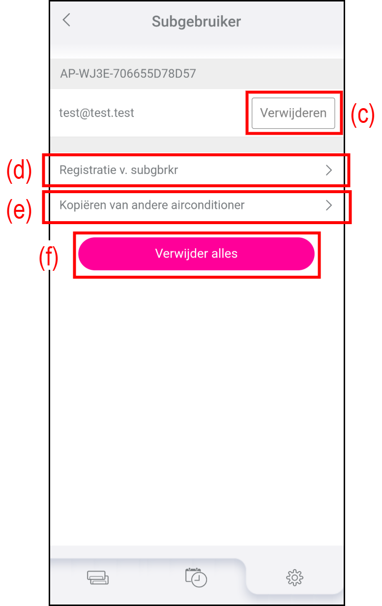Tik op (f) om alle subgebruikers die bij de airconditioner zijn geregistreerd te verwijderen.