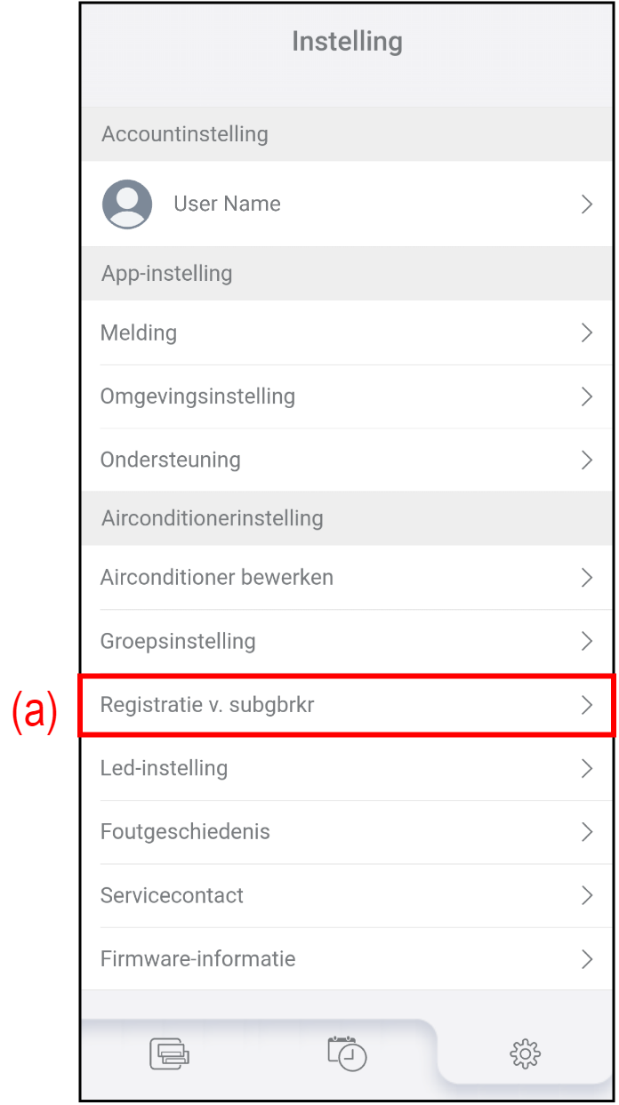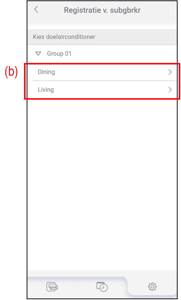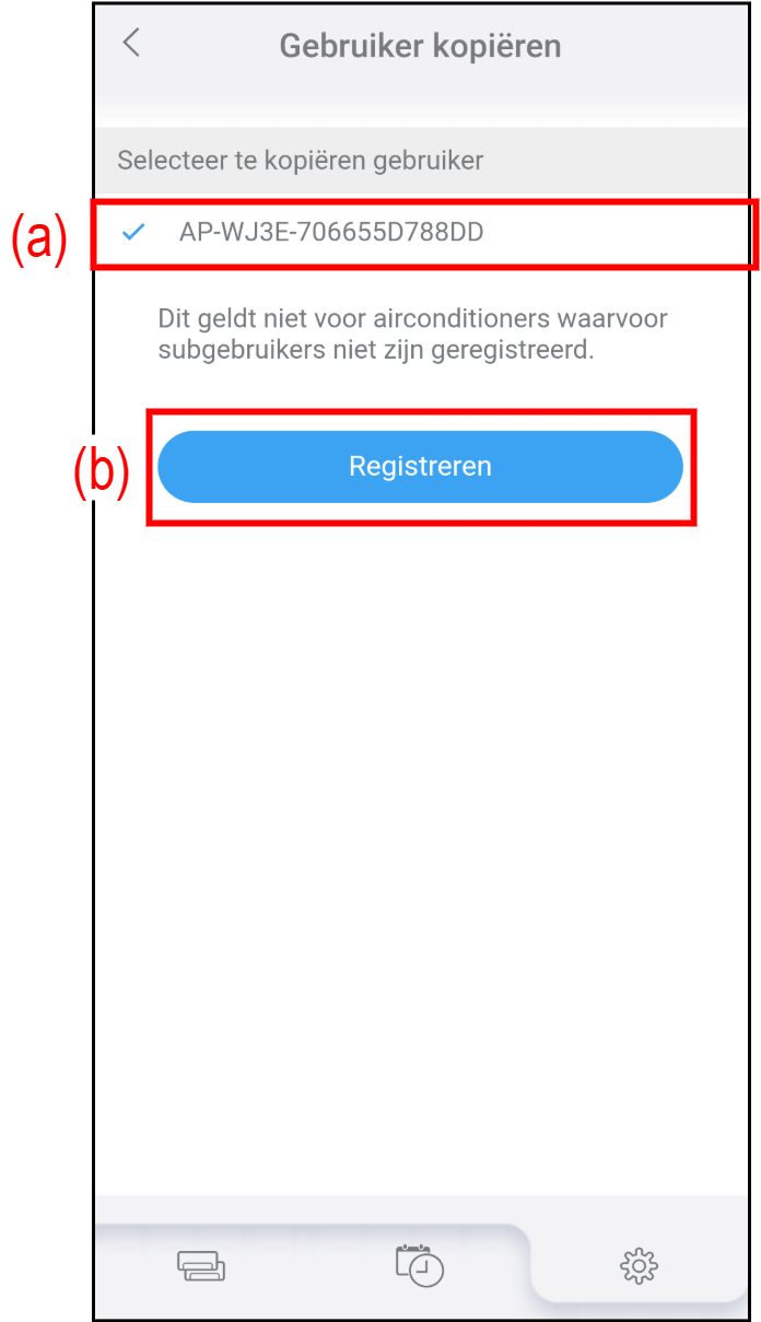 Tik op (b) om de airconditioner te selecteren waaraan u de subgebruiker wilt toevoegen of wissen.