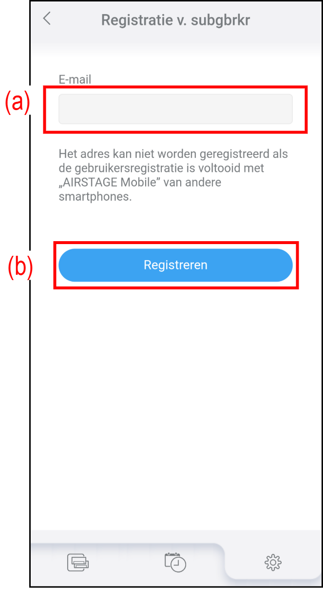 - Voer het e-mailadres van de subgebruiker in bij (a) op het scherm "Registratie v. subgbrkr".