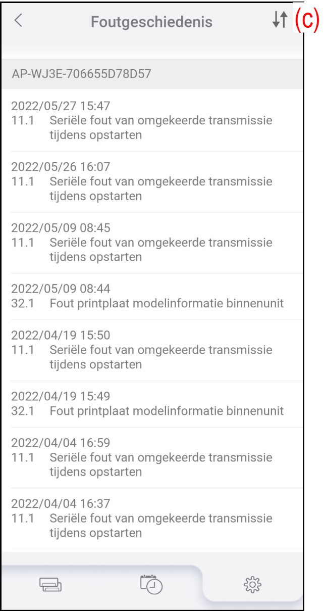 - De foutgeschiedenis van de airconditioner wordt weergegeven in volgorde van nieuw naar oud.