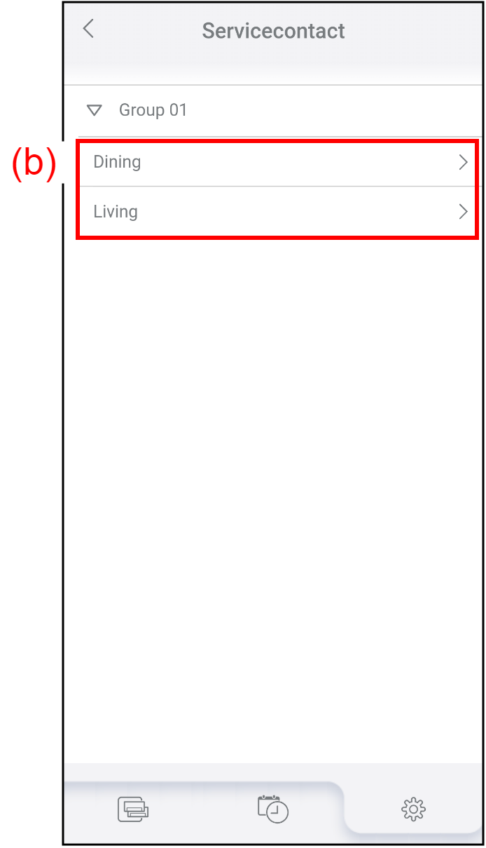 - Tik op (b) om de airconditioner te selecteren om de informatie op het servicecontact te controleren of te bewerken.