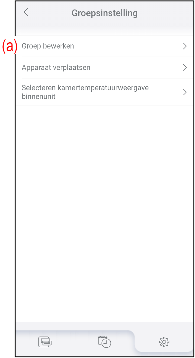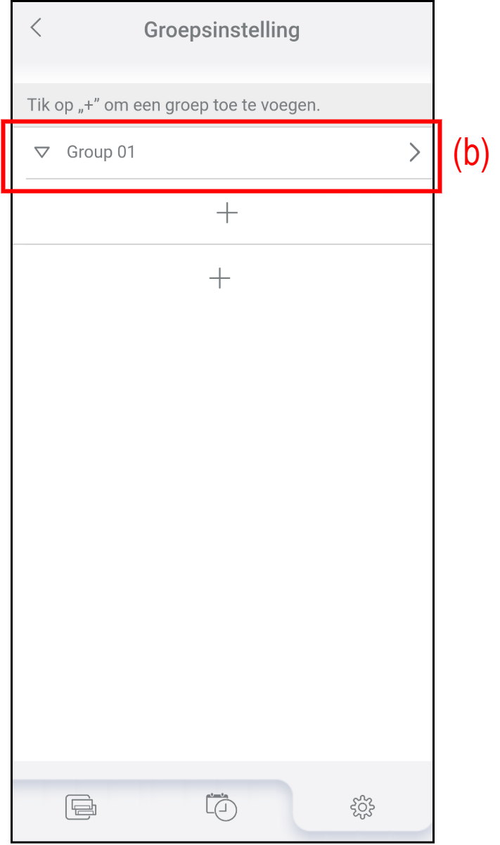 Tik op (a) in het scherm "Groepsinstelling".