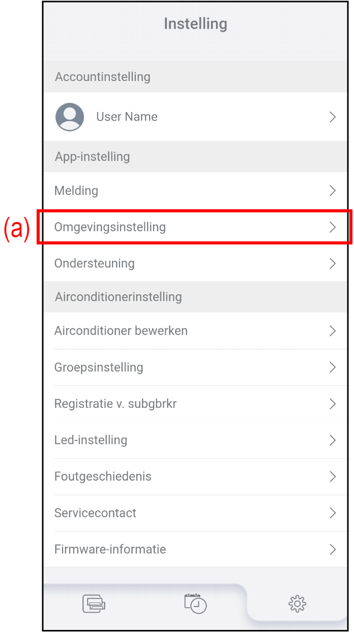 U kunt de volgende functies gebruiken in het scherm "Omgevingsinstelling":