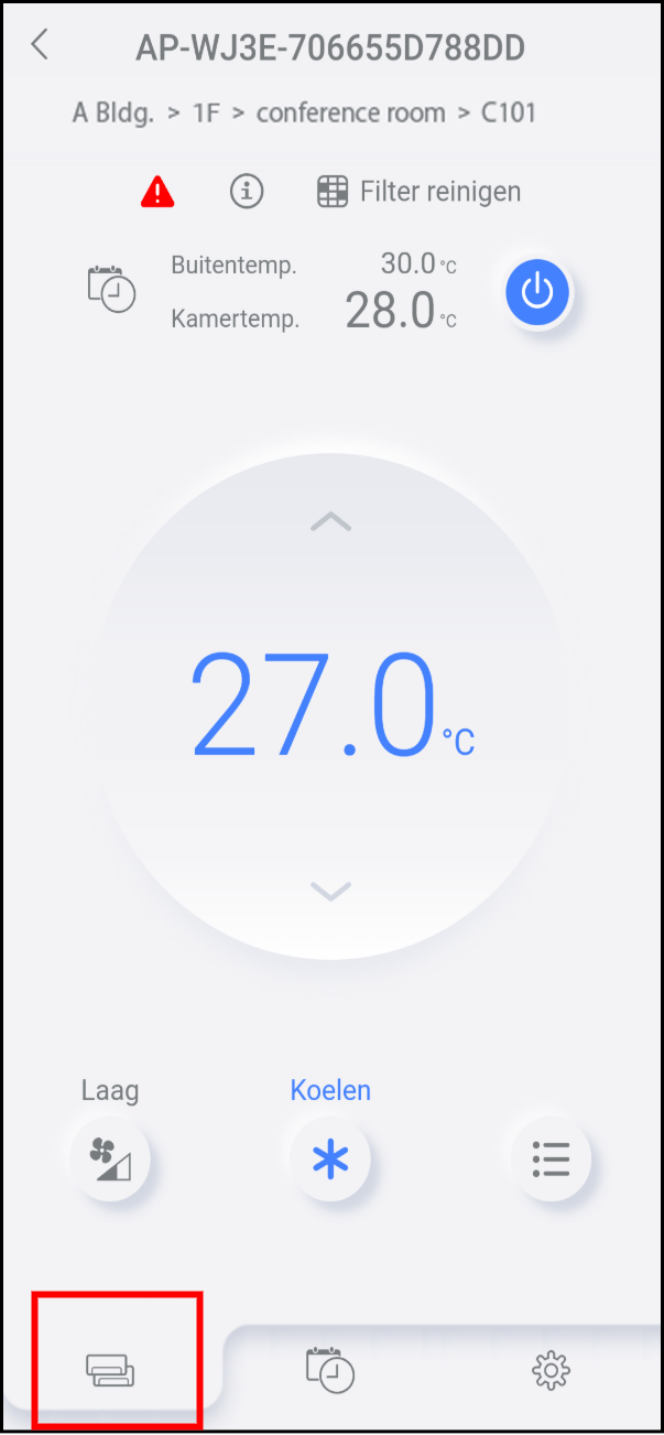 U kunt de basisfuncties van de airconditioners gebruiken vanaf het tabblad airconditioner ( [