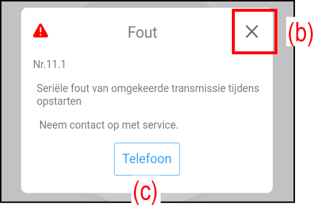 Tik op de knop (c) om de servicecontactpersoon te bellen.