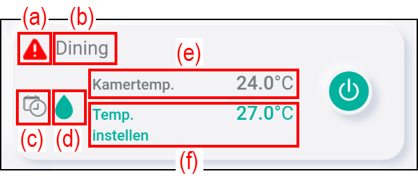 Tik op (c) om de werking van elke airconditioner te starten of te stoppen.