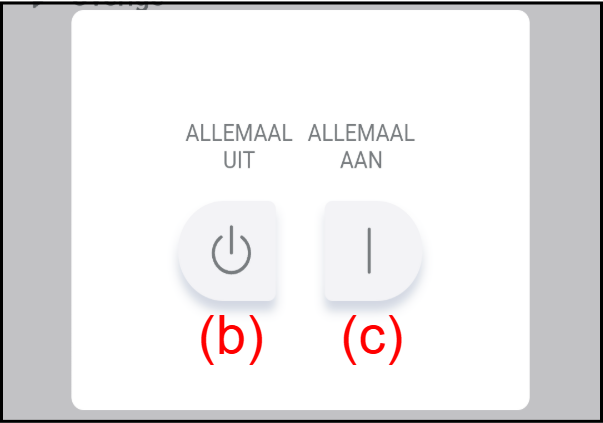 | (b) | Alle Aan-/uitknop | Om de werking van alle airconditioners te starten/stoppen, tik hier. |