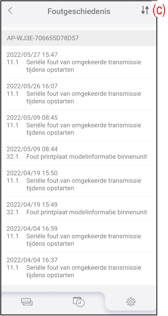 - De foutgeschiedenis van de airconditioner wordt weergegeven in volgorde van nieuw naar oud.