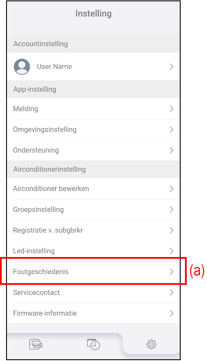 - Tik op (b) om de airconditioner te selecteren waarvan u de foutgeschiedenis wilt controleren.