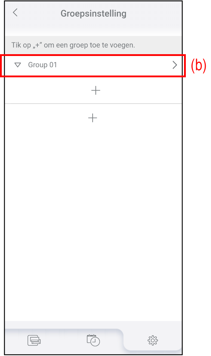 Tik op (a) in het scherm "Groepsinstelling".