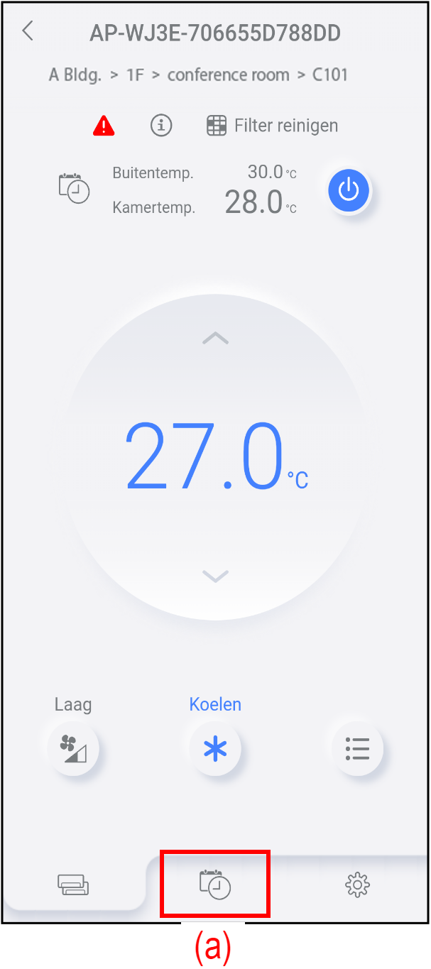 Tik op (b) om de airconditioners weer te geven die in de groep zijn geregistreerd.