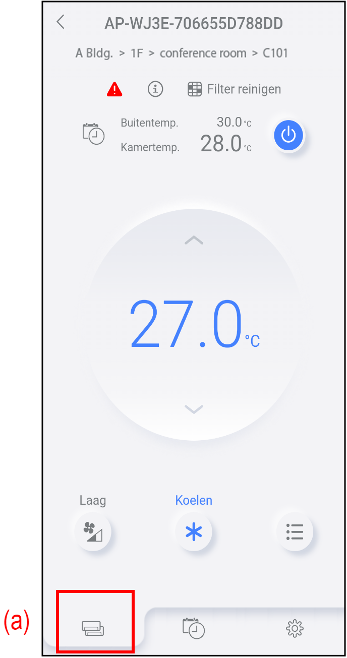 U kunt de basisfuncties van de airconditioners gebruiken vanaf het tabblad airconditioner (a) ( [
