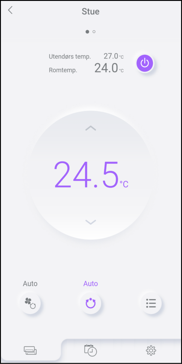 Denne appen har to typer kontrollmoduser for betjening av klimaanlegg: