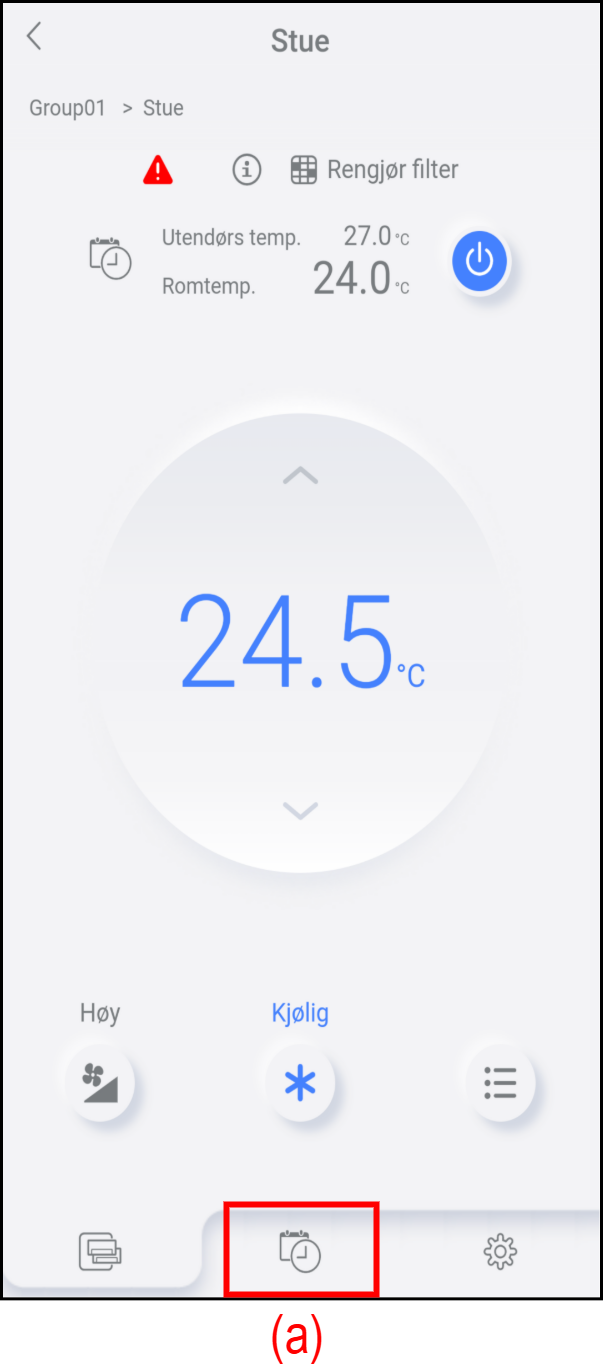 Trykk på (b) for å vise klimaanleggene registrert i gruppen.