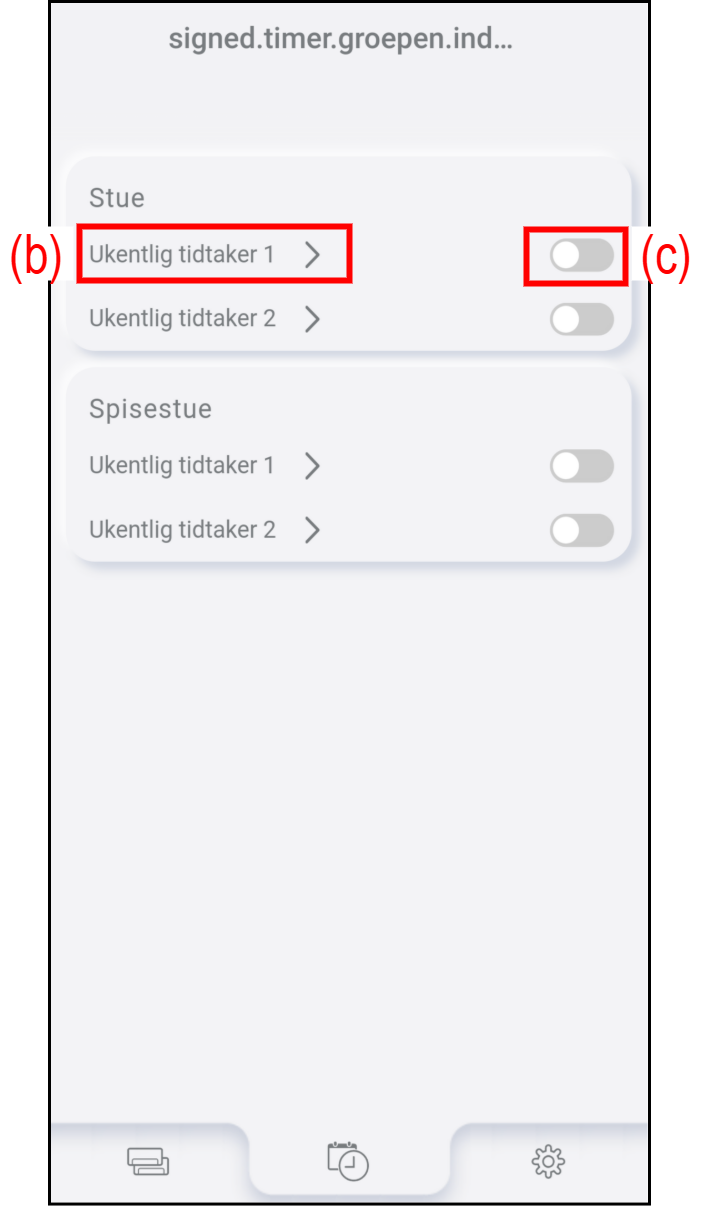 Trykk på (c) for å aktivere/deaktivere den ukentlige timeren.