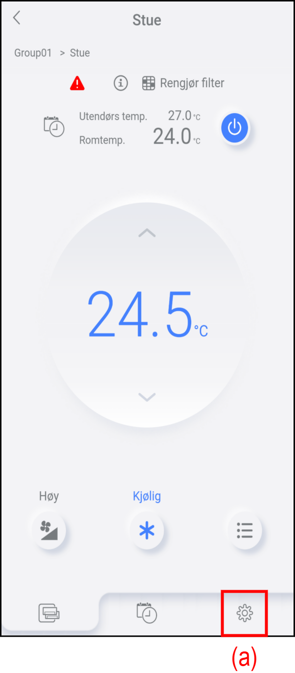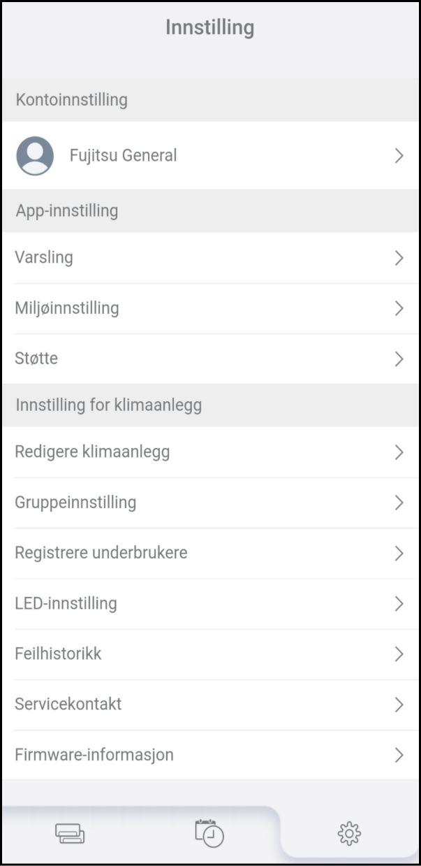 Du kan sjekke og endre de ulike innstillingene for denne appen eller klimaanleggene fra Innstillinger-fanen [
