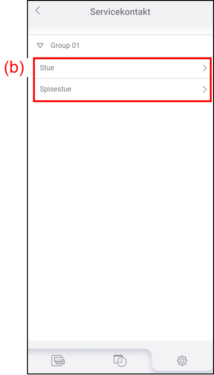 - Trykk på (b) for å velge klimaanlegget du vil sjekke eller redigere informasjon om servicekontakten for.