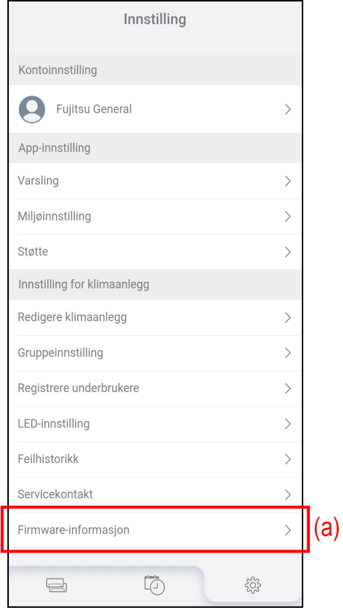 (c) Indoor Unit Viser klimaanleggets fastvareversjon til innendørsenheten (programvare 1 eller programvare 2). (d) WLAN-adapter Viser fastvareversjon for WLAN-adapteren som er koblet til innendørsenheten. (e) Automatic update settings Trykk for å aktivere/deaktivere automatisk oppdatering eller angi tidspunkt for når automatisk oppdatering skal starte.