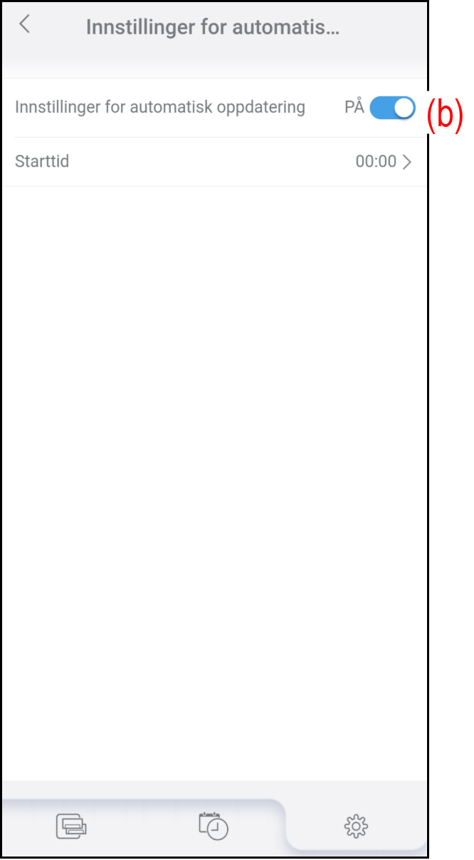 Trykk på (b) for å aktivere/deaktivere automatisk oppdatering.