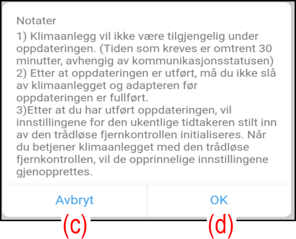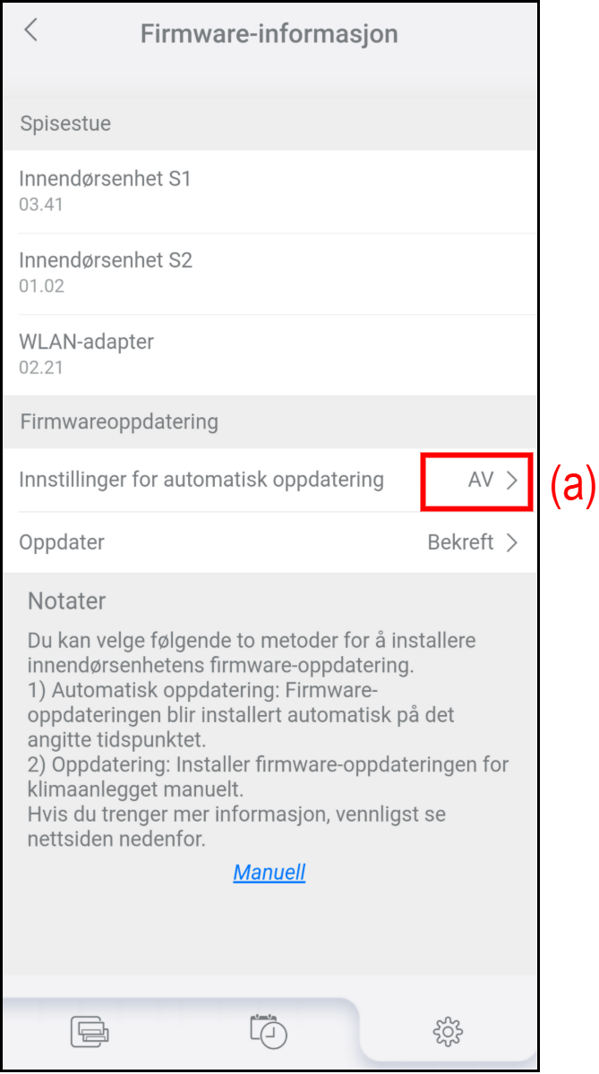 Du kan angi tidspunkt for oppstart av automatisk oppdatering av fastvare på klimaanlegget og WLAN-adapteren.