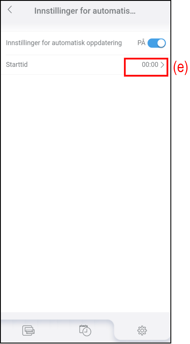 - Trykk på (e) for å angi tidspunkt for oppstart av automatisk oppdatering av fastvare.