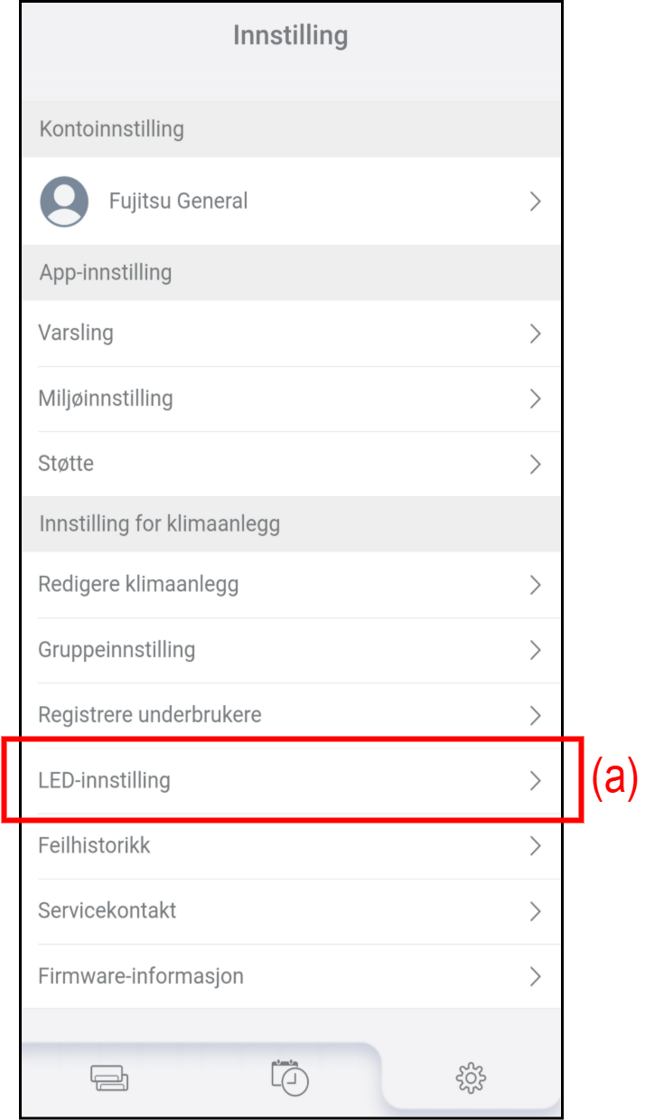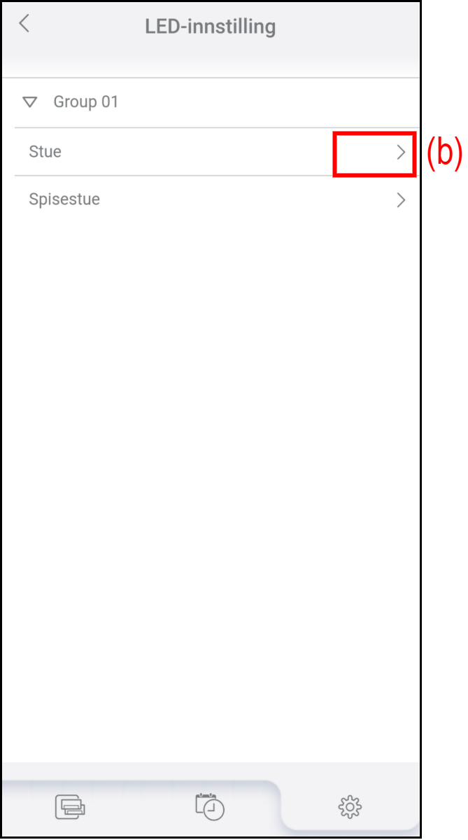 - Trykk på (a) på «Setting»-skjermen (Innstilling) for å endre LED-innstilling.