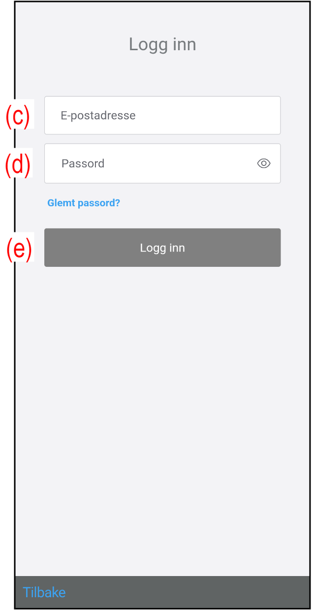 - Logg inn med e-postadressen (c) og passordet (d) du har registrert.