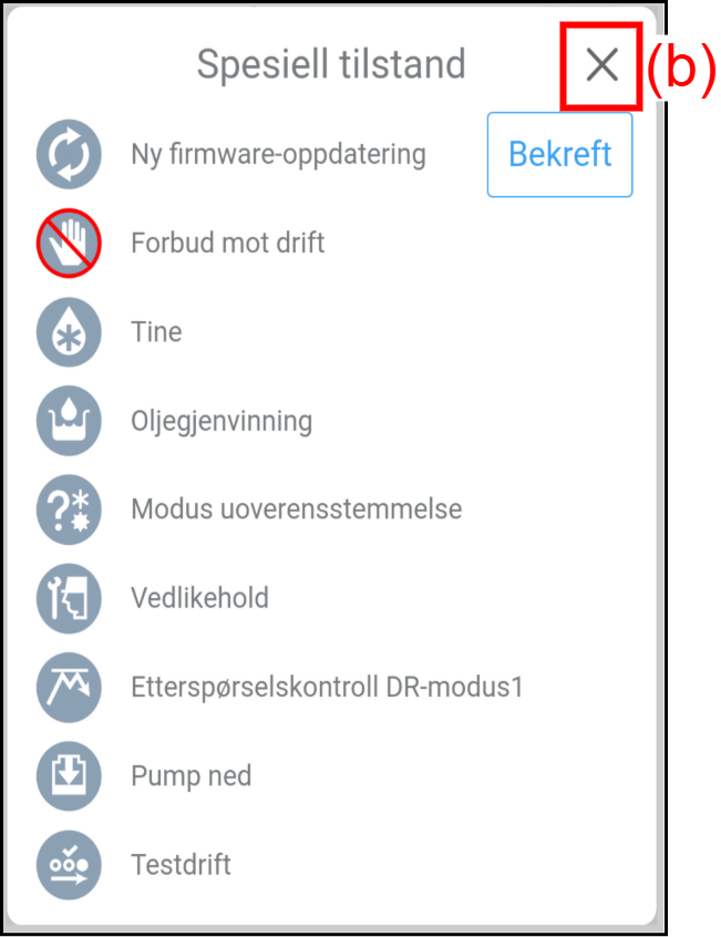Prohibition | Betjening fra denne appen hindres av den sentrale styreenheten. |