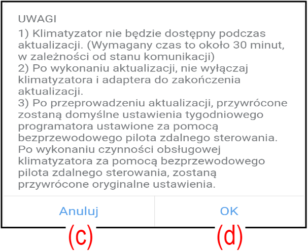Istnieje możliwość ustawienia godziny rozpoczęcia automatycznej aktualizacji oprogramowania sprzętowego klimatyzatora i adaptera WLAN.