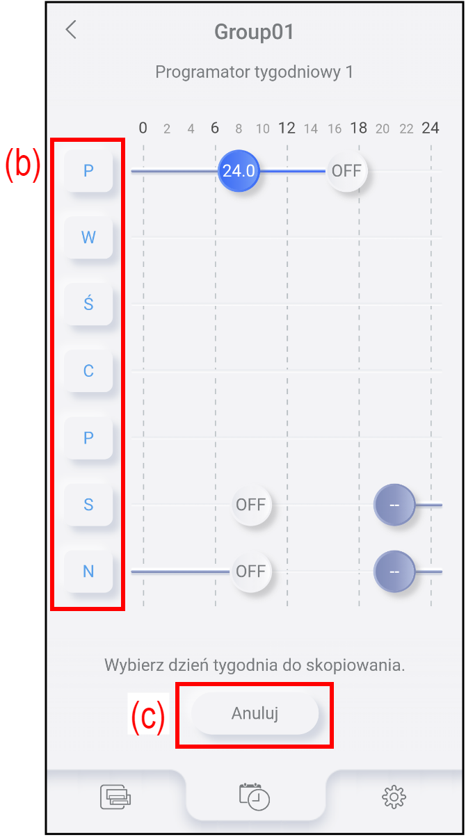 - Wybierz dzień tygodnia (b), z którego chcesz skopiować.