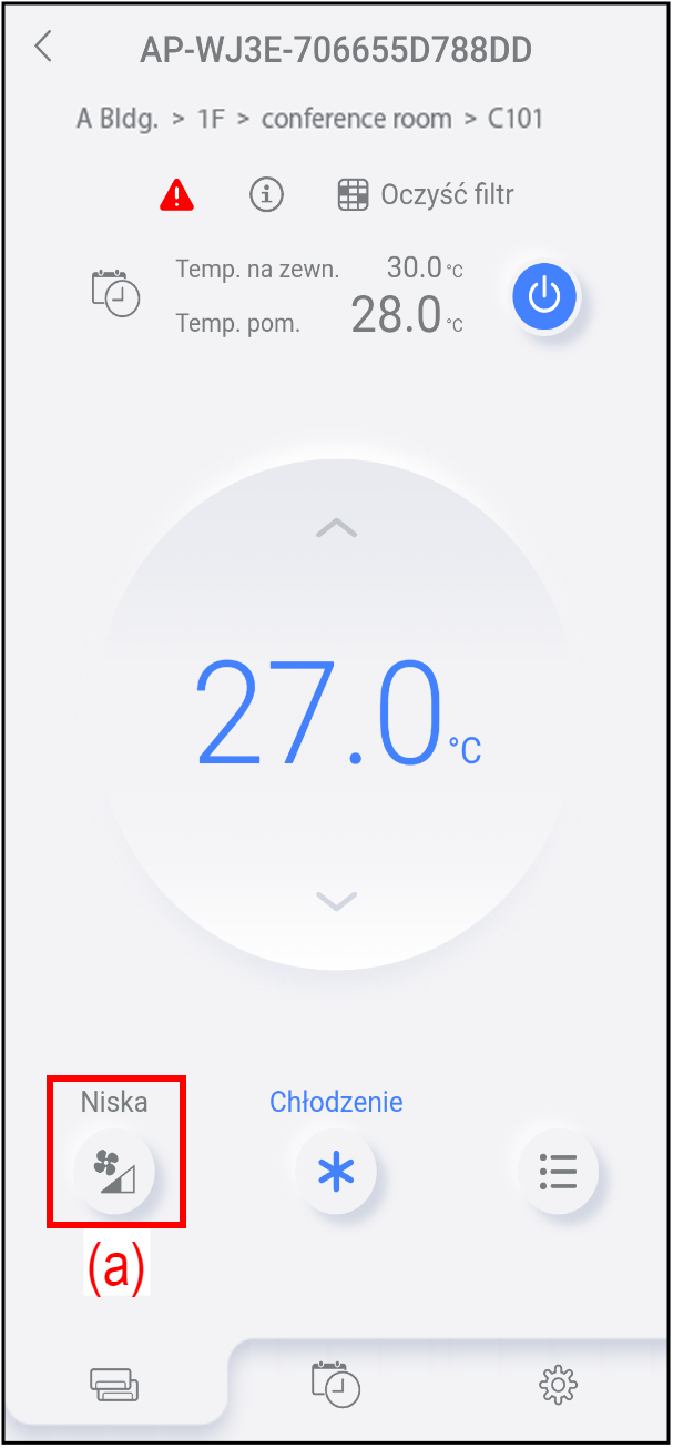 Gdy klimatyzator jest zatrzymany, nie można ustawić szybkości wentylatora.
