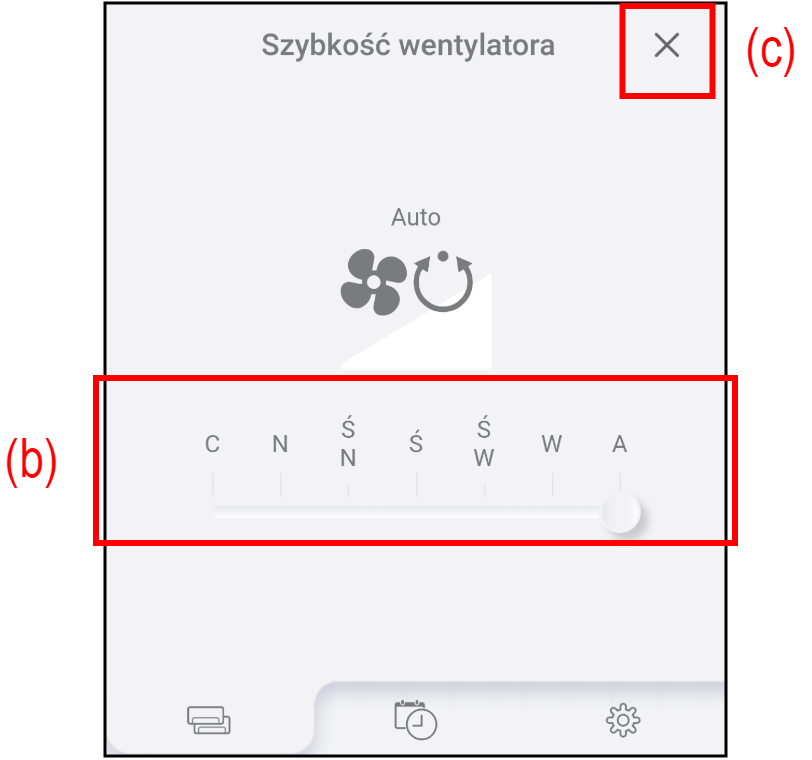 Przesuń pasek (b), aby dostosować szybkość wentylatora.