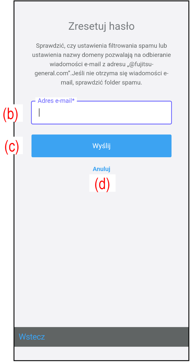 Aby zamknąć ekran bez resetowania hasła, dotknij tego przycisku.Dotknij linku w wiadomości e-mail.