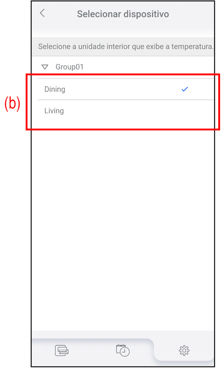 - Toque em (b) para selecionar o aparelho de ar condicionado a ser utilizado como o aparelho de ar condicionado representante.