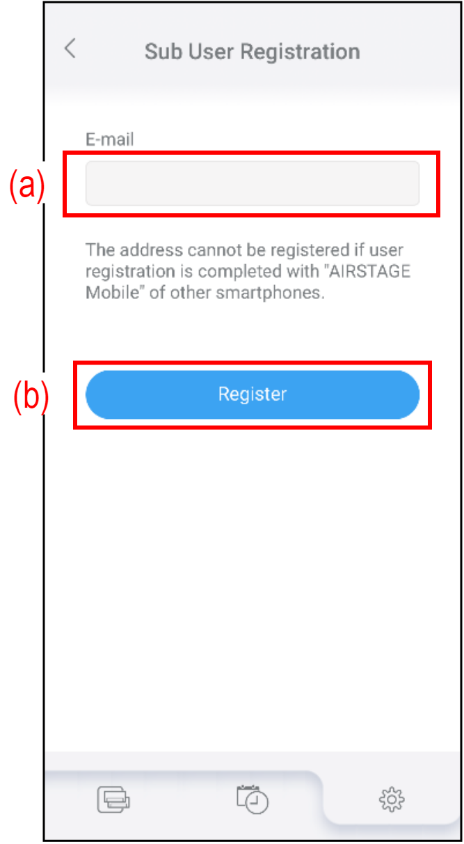 - Introduceți adresa de e-mail a subutilizatorului, la (a), pe ecranul „Sub User Registration”.
