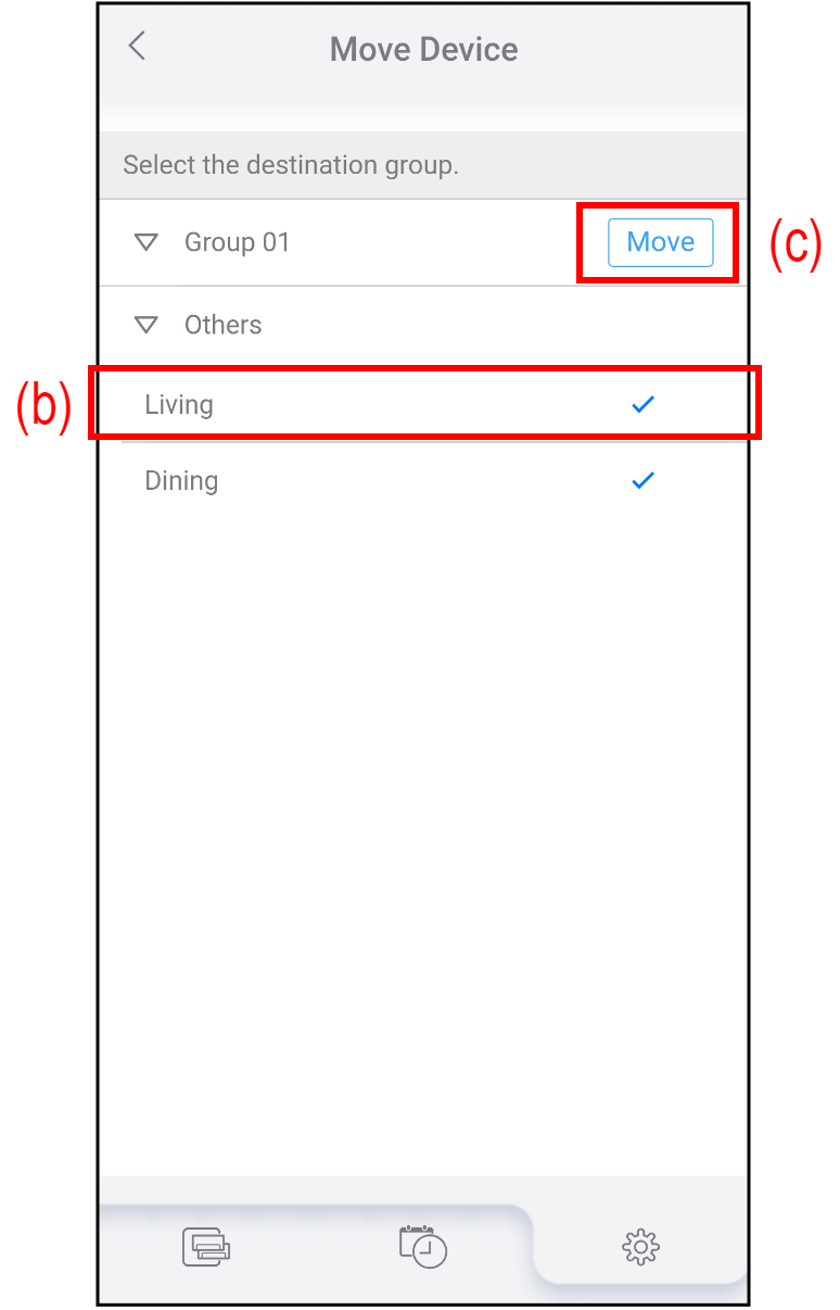 - Selectați aparatul de aer condiționat (b) pe care doriți să îl mutați.
