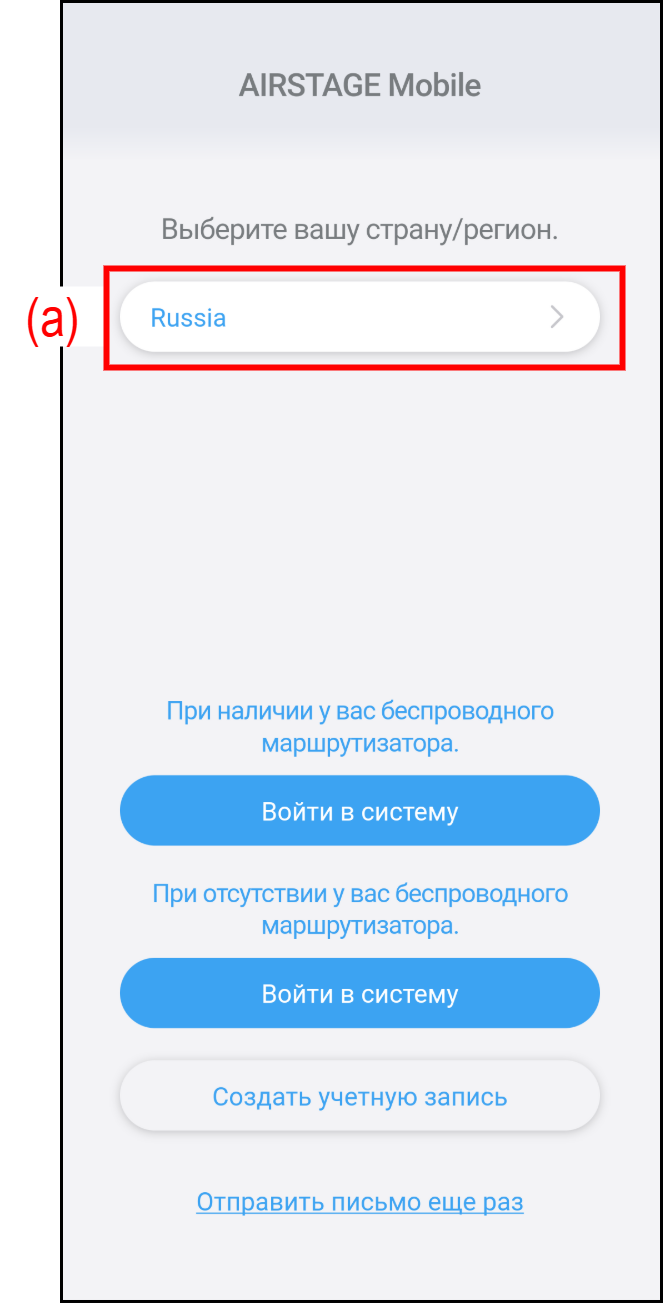 Если у вас нет учетной записи AIRSTAGE Mobile, создайте новую учетную запись. Подробности см. в разделе «Создание учетной записи».