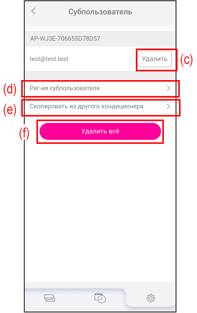 Вы можете зарегистрировать или удалить субпользователей, которые могут управлять кондиционерами.