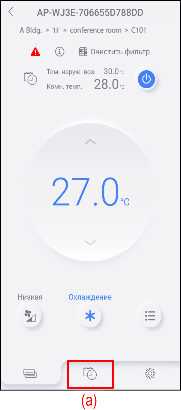 Недельный таймер можно задать для каждого кондиционера воздуха, нажав на его имени.