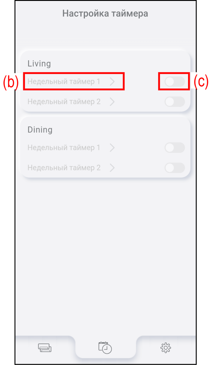Нажмите (b), чтобы посмотреть или изменить настройки недельного таймера. Подробности см. в разделе «Процедура настройки таймера».