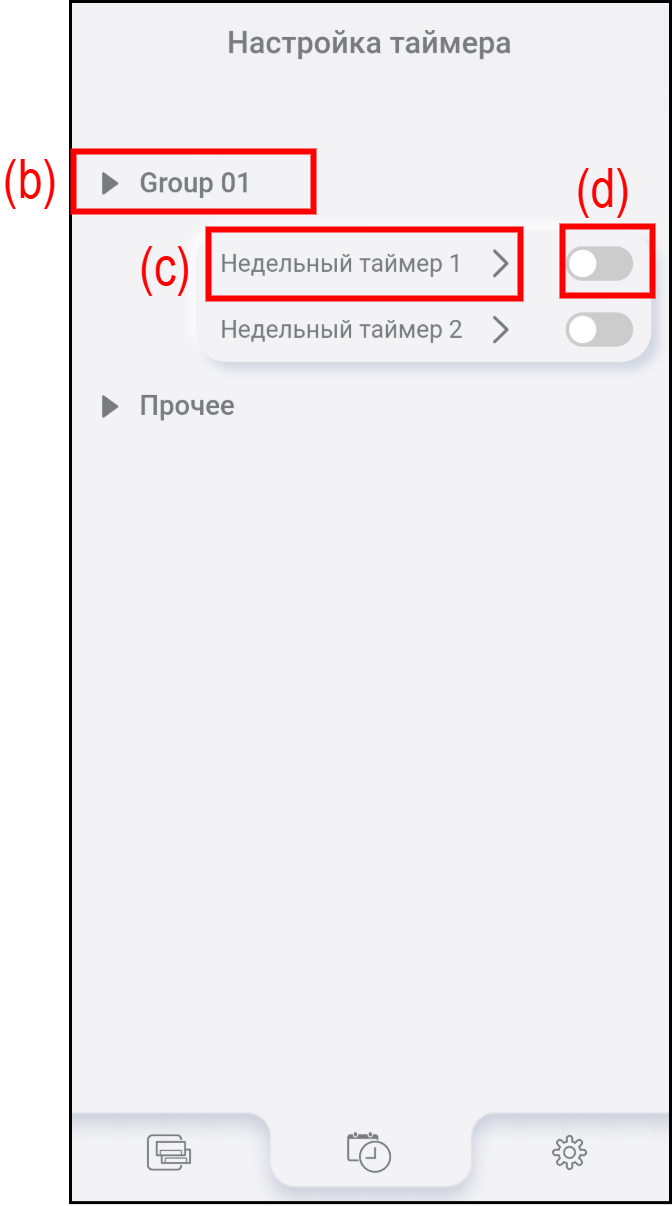 Нажмите (c), чтобы посмотреть или изменить настройки недельного таймера. Подробности см. в разделе «Процедура настройки таймера».