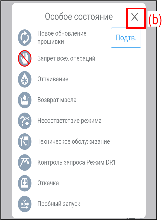 Запрет | Управление с помощью этого приложения блокировано центральным пультом управления. |
