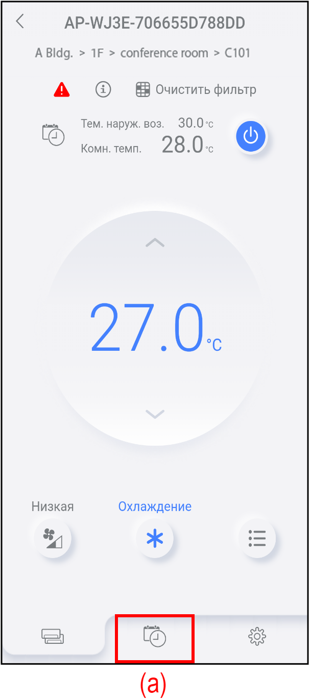 Нажмите (c), чтобы посмотреть или изменить настройки недельного таймера. Подробнее см. в разделе «Процедура настройки таймера».