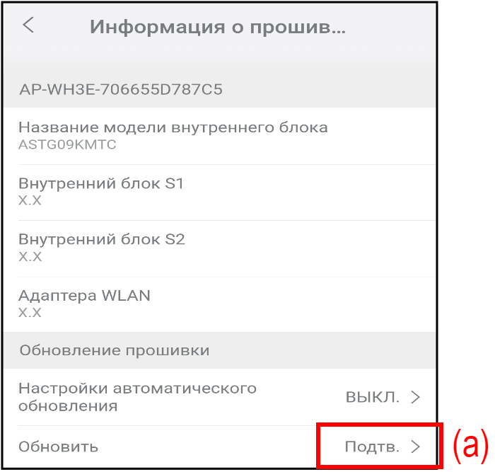 Когда выходит новая версия прошивки, на экране «Информация о прошивке» появляется сообщение «Подтв.».