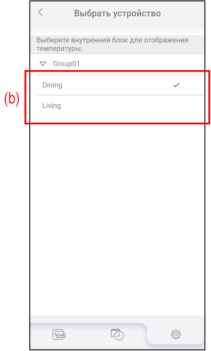 Здесь вы можете выбрать представительный кондиционер воздуха в группе. Для отображения температуры в помещении для группы используется температура, измеренная представительным кондиционером воздуха.
