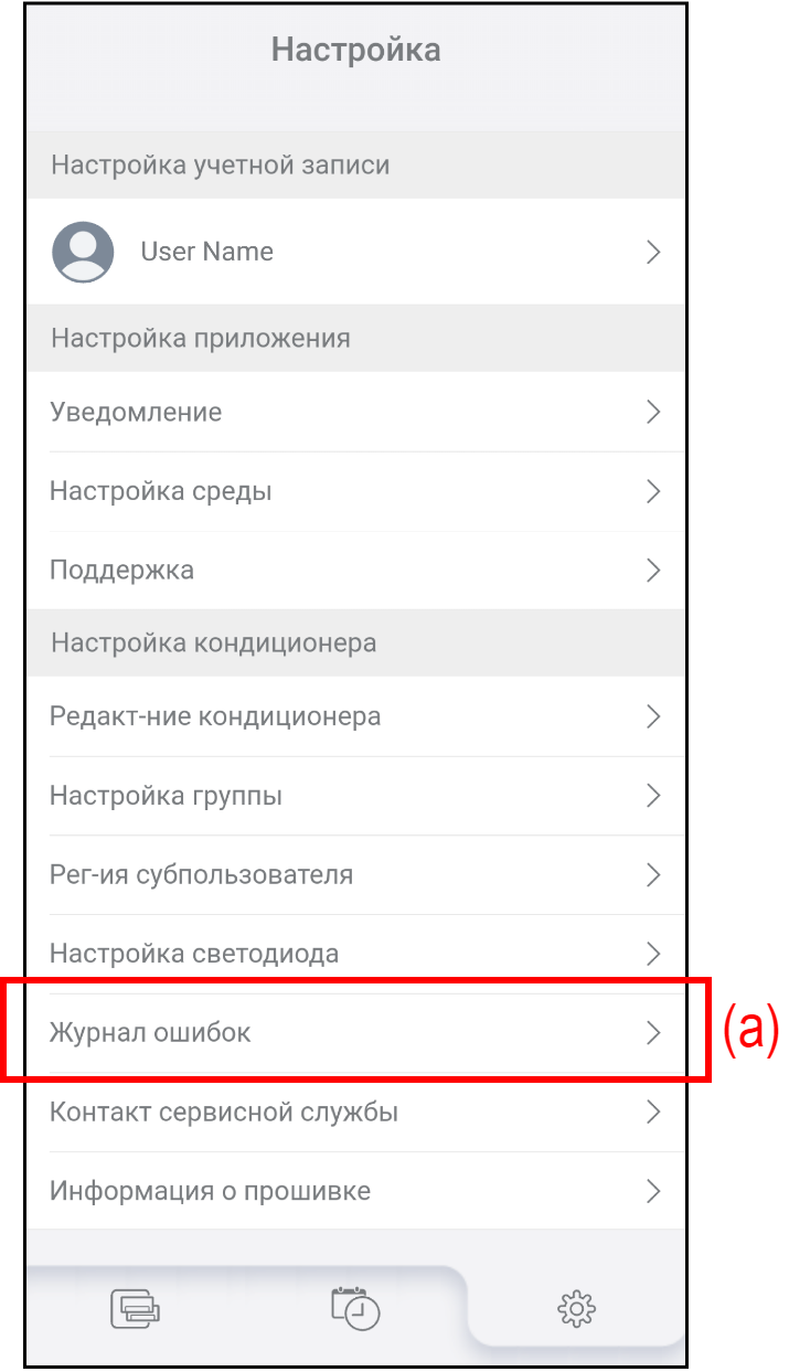 - Нажмите (b), чтобы выбрать кондиционер и просмотреть историю ошибок.