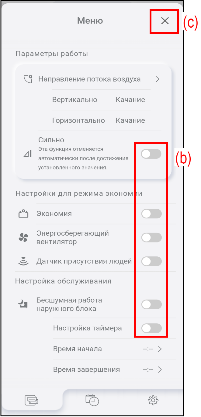 Нажимайте (b), чтобы включать или выключать каждую функцию.