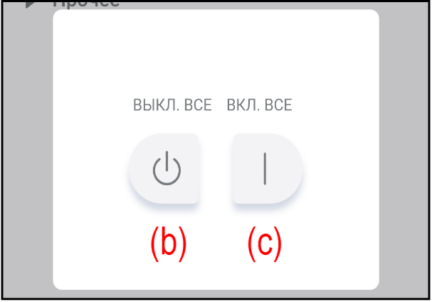 | (b) | Кнопка включения/выключения всех | Нажмите здесь, чтобы запустить/остановить все кондиционеры воздуха. |
